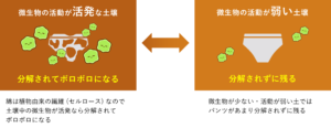 パンツが分解されたということは「バイオの惠」を使用した土は、「良い土」だということがわかりました。