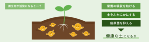 「バイオの惠」にはBB菌をはじめとするたくさんの菌が含まれているので、畑の土の微生物量が増え、微生物の働きが活発になり、植物を育てるのに適した健康な土になっていると考えられます。