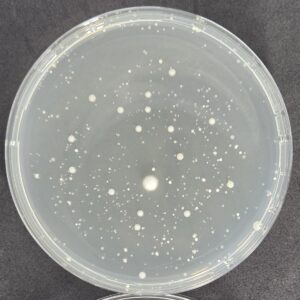 これは、「コロニー」と言って菌がたくさん増殖して目に見えるようになった「菌の集落」なんです。