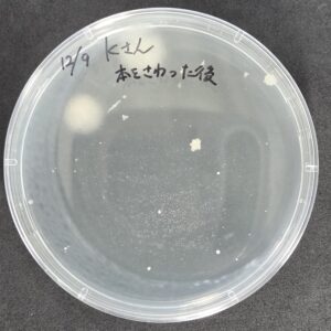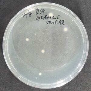 また、私の手は研究室の流しで石鹸を使って手を洗った後でしたが、それでもこれだけ菌が生えてきました。