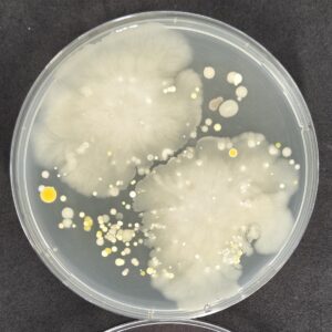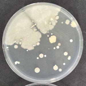 他の菌よりも増殖速度が速く、コロニーが大きく広がっているのが特徴です。