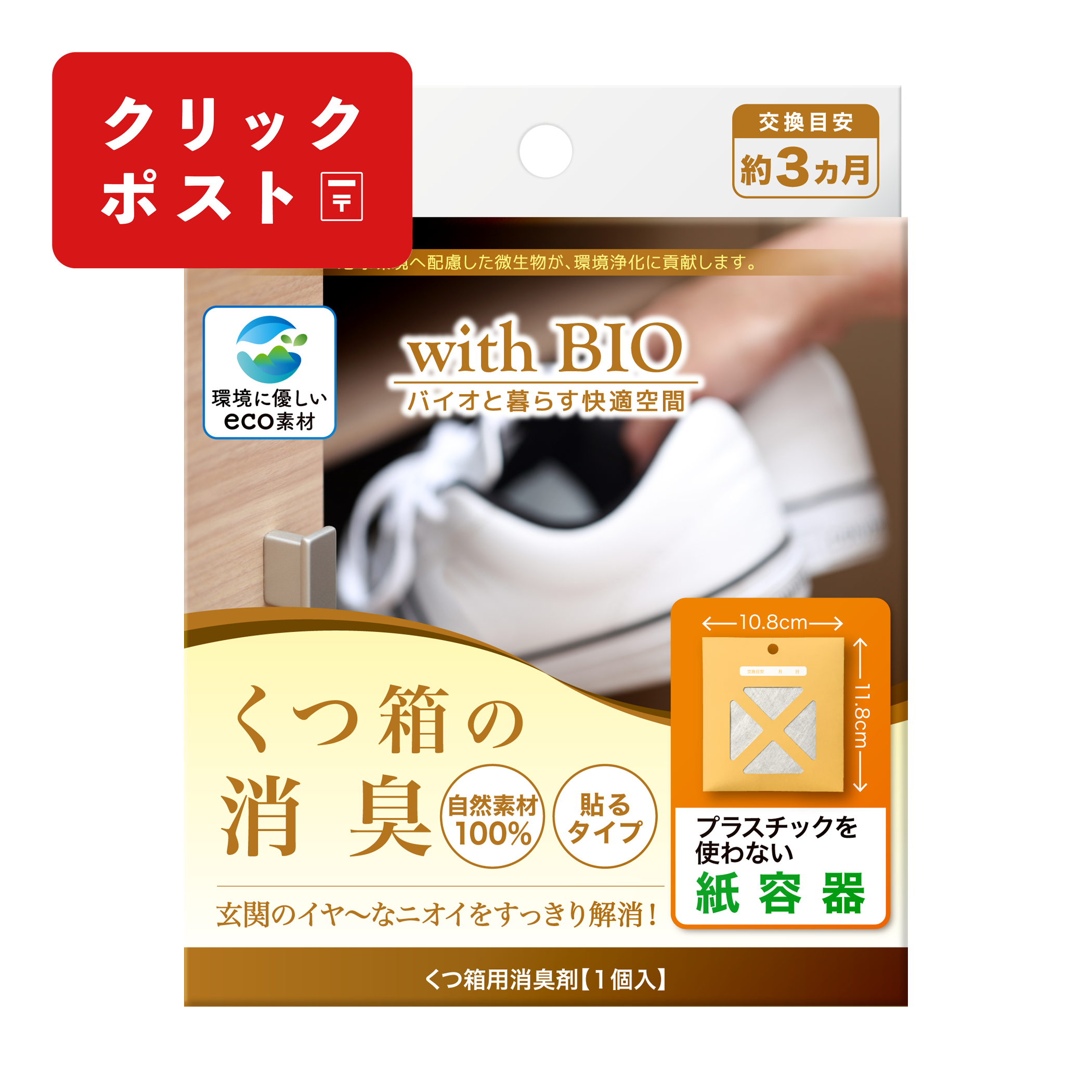 バイオ(BB菌)を利用した環境にやさしい消臭剤です。バイオの働きにより靴のニオイすっきり、玄関を快適にします。